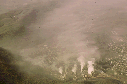 Fog forms from the effluent of smokestacks in a central Pennsylvania valley (courtesy of Alistair Fraser).