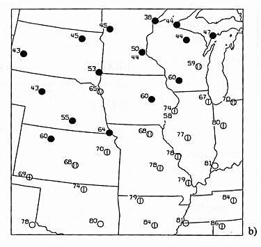 Surface station models showing temperature and cloud cover at 20Z on May 9, 1995.